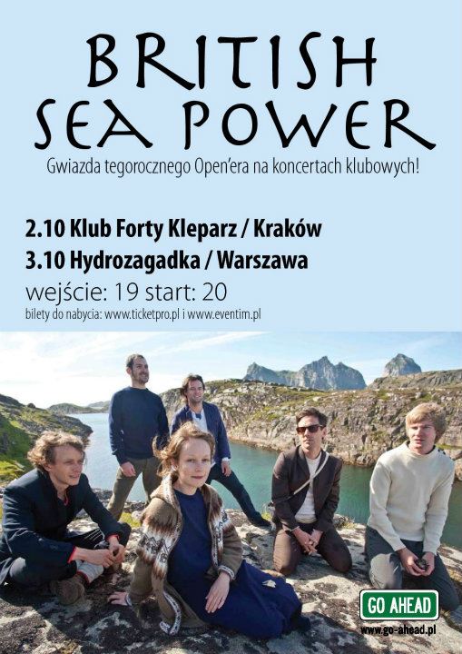 British Sea Power to szóstka muzyków grających indie-rocka. Ich twórczość porównywana bywa do muzyki tak różnych grup jak The Cure, Joy Division, Pixies czy Arcade Fire. Zespół powstał w 2000 roku w Brighton i wydał do tej pory pięć albumów. Można śmiało powiedzieć, że siła zespołu tkwi w występach na żywo. British Sea Power mają na koncie występy u boku takich formacji jak Manic Street Preachers czy Interpol. Dla samych artystów inspiracją pozostaje David Bowie, Mercury Rev oraz Flaming Lips.