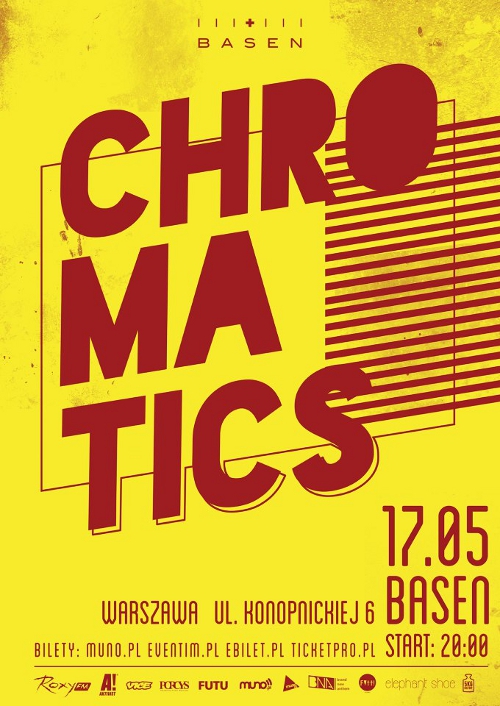 Mamy ogromną przyjemność zaprosić na pierwszy w Polsce klubowy koncert zespołu Chromatics. Romantyczni synthpopowcy z odległego Oregonu pojawią się już 17 maja w Basenie, by promować swoje ostatnie wydawnictwo, album Kill For Love. Będzie to ich dopiero druga wizyta w Polsce - Wcześniej muzycy zaprezentowali się na katowickim OFF Festivalu zbierając znakomite recenzje ze swojego występu.