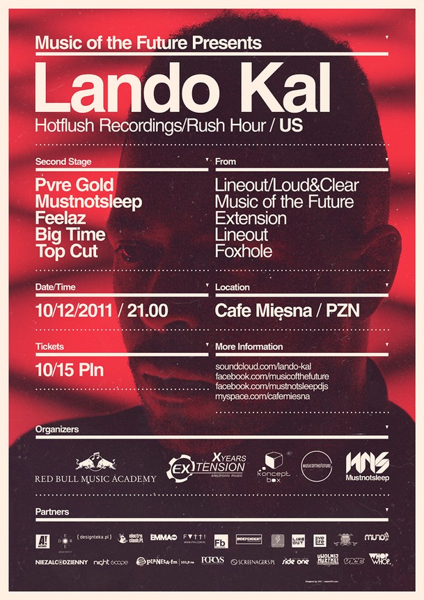 Lando Kal jest połową kolektywu didżejskiego Lazor Sword. Ma na koncie świetnie przyjęte nagrania wydane w takich wytwórniach jak Hotflush Records czy (jako pierwszy artysta) w Numbers. House'owa instrumentacja, dubstepowe bity są jego znakiem rozpoznawczym. Dodając do tego jego obsesję na punkcie R'n'B lat dziewięćdziesiątych, detroit techno, garage, czy nawet współczesnymi producentami hiphopowymi otrzymujemy mieszankę wybuchową. Pulsujący bas - wszechobecny w jego setach - pozwolił mu gościć w całej Europie, a także w San Francisco i wielu klubach Nowego Jorku, gdzie grał jako rezydent m.in. z Sepalcure. Lando Kal wystąpi w Polsce po raz pierwszy.