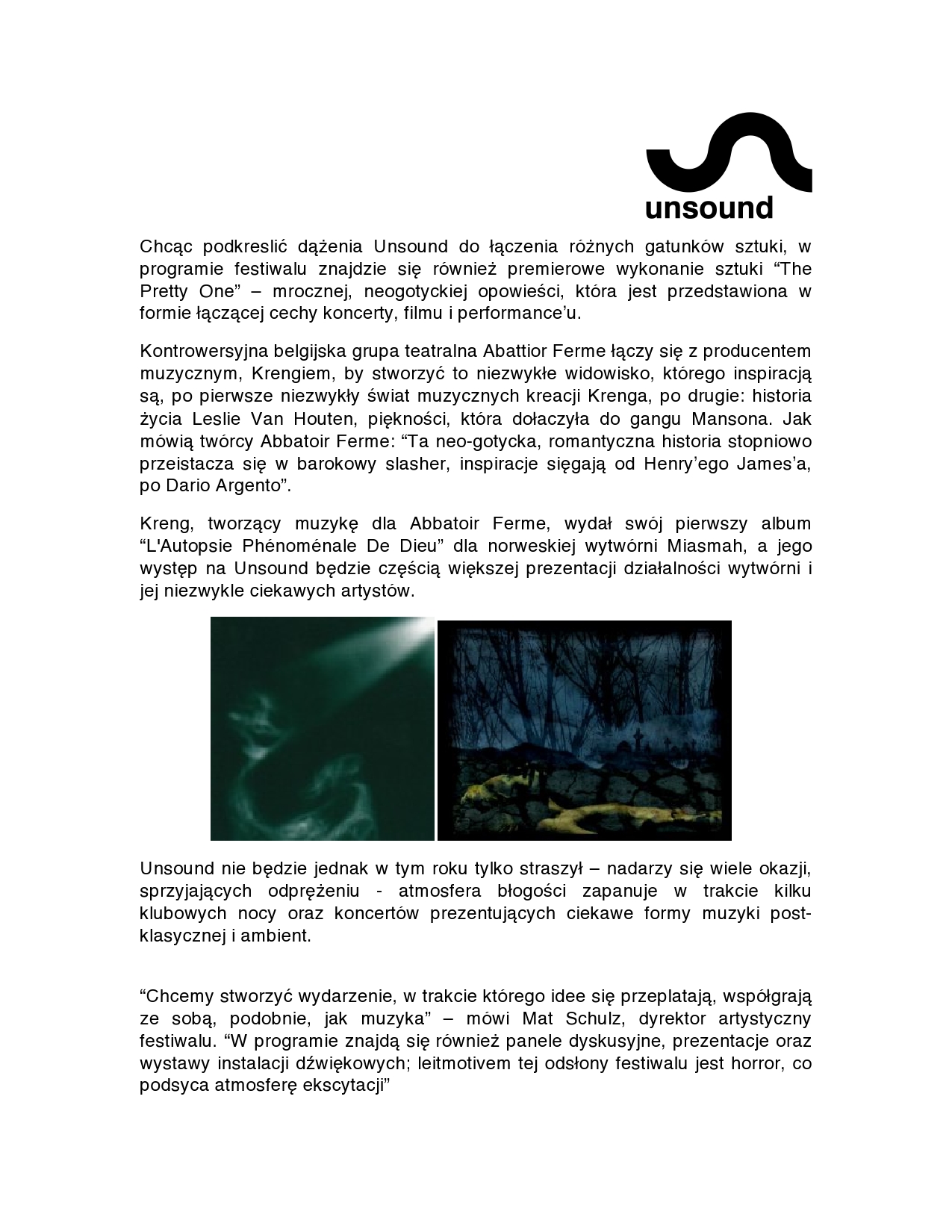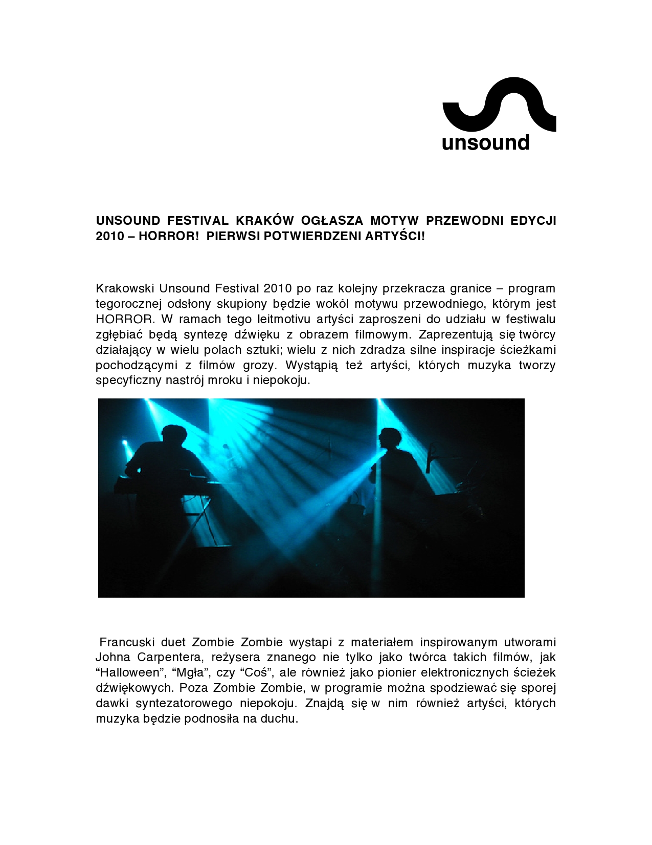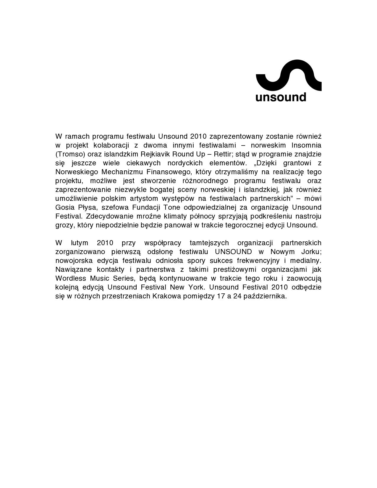 IMPREZY Unsound Festival 17 października 2010 - Kraków - Kraków 24 października 2010 - Kraków - Kraków Tweet Materiały Organizatora: