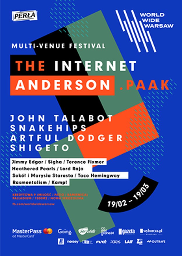 To do World Wide Warsaw przez dokładnie miesiąc, bo od 19 lutego do 19 marca będą należeć sceny i parkiety stolicy. Start to koncert artysty, już teraz nazywanego nowym królem soulu - Andersona .Paaka prosto z Kalifornii. Koniec to zupełnie inny biegun: impreza z mocnym głębokim techno z udziałem 2 gwiazd: Brytyjczyka Sigha , który swoim setem zawładnie publiką do białego rana oraz wystę p live prawdziwej perełki - Francuza Terence'a Fixmera , który na scenie elektroniki jest ju ż od niemal 20 lat. Legend nigdy dość, dlatego na zaproszenie WWW po kilkunastu latach wracają do Polski Artful Dodger w ramach urodzin klubu festiwalowego, jakim jest Miłość na Kredytowej 9. W programie festiwalu również spotkanie z przedstawicielami jednej z najważniejszych wytwórni nowej muzyki - Ghostly International: wśród nich genialny perkusista tworzący własne utwory w połączeniu z nowymi technologiami elektronicznymi - Shigeto; szalona impreza ze świetnym duetem Snakehips, którzy stworzyli jedne z najpopularniejszych hitów imprezowych ostatnich miesięcy; John Talabot i Jimmy Edgar - czyli uznane nazwiska DJskie i producenckie zabiorą klubową publikę w wielogodzinne rejsy parkietowe. Koroną w line-upie jest koncert zespołu The Internet, który pojawi się nad Wisłą po raz pierwszy, dość powiedzieć, że ich świe że podejście do r'n'b i soulu zdobyło im nominację do nagrody Grammy 2016. Na to wszystko miały przygotować trzy gorące before parties z udziałem DāM-FunKa, Gaslamp Killera i Nosaj Thinga, jakie odbyły się na jesieni w warszawskiej Miłości na Kredytowej 9.