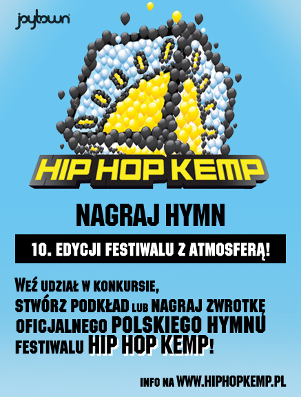 W tym roku hiphopowy świat będzie celebrował jubileusz swojego wielkiego święta. Z okazji 10. edycji czeskiego festiwalu Hip Hop Kemp, Agencja Joytown – polski promotor czeskiej imprezy - zachęca do wzięcia udziału w wyjątkowym konkursie dla młodych producentów i raperów na nagranie festiwalowego hymnu!