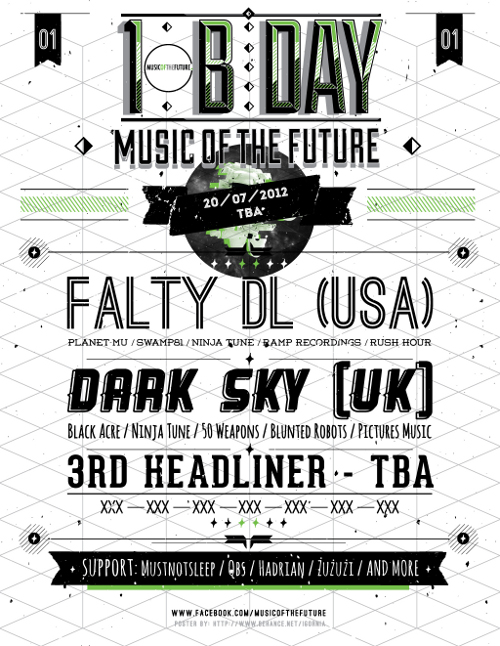 PREZENT URODZINOWY Czyli wielka zrzuta na festiwalową imprezę Music Of The Future FaltyDL, Dark Sky, Juk Juk, 20 lipca 2012 (miejsce wciąż tajne)