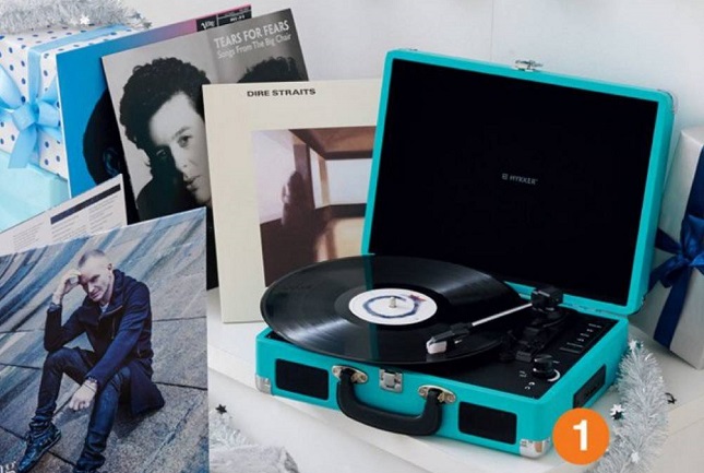 12 grudnia 2016Jeśli jeszcze zastanawiacie się co sprawić na święta znajomemu o muzycznych zainteresowaniach, sieć sklepów Biedronka wychodzi z bardzo ciekawą ofertą. Od 15 grudnia w marketach będzie można zakupić przenośny gramofon marki HYKKER wyglądający jak walizka, który kosztować będzie jedyne 159 złotych, a który oprócz odtwarzania płyt winylowych posiada tak zaskakujące funkcje jak na przykład wbudowany port usb, dzięki któremu muzykę z winyli będzie można zgrywać na nośniki elektroniczne. Oprócz tego, w ofercie dyskontu znajdą się także same płyty gramofonowe. Na zdjęciu w sklepowej gazetce prezentują się tak klasyczne tytuły jak choćby Nevermind Nirvany, It Takes a Nation ... Public Enemy czy Blue Train Coltrane'a. Każdy w cenie niecałych 45 złotówek. Wychowany na Trójce wyraził już swoje oburzenie skandalicznie niską ceną tych rarytasów i planuje wielki protest pod Biedronką właśnie w najbliższy czwartek.