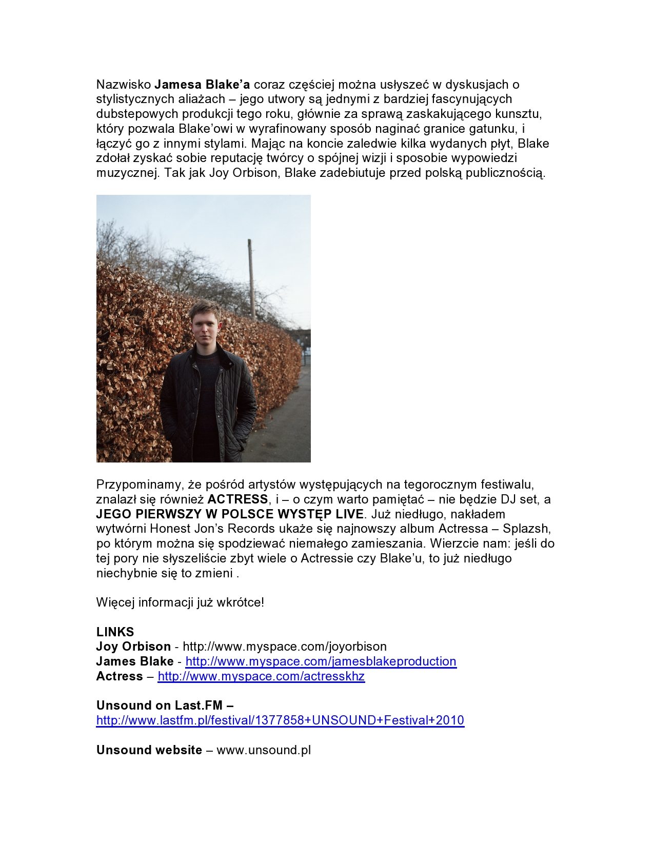 IMPREZY Bass Mutations: James Blake, Joy Orbison, Mount Kimbie i inni 23 października 2010 - Fabryka - Kraków Tweet Materiały Organizatora: