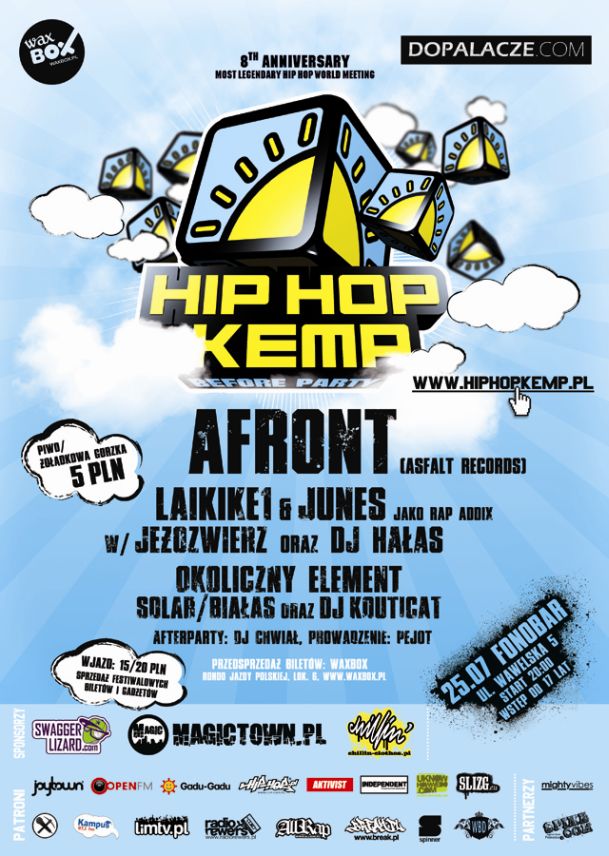 Już od kilku lat Polacy mogą wczuwać się w wyjątkowy klimat festiwalu Hip Hop Kemp (20-22.08.2009, Hradec Králové, Czechy) podczas organizowanych w naszym kraju oficjalnych rozgrzewek przed tym wielkim świętem muzyki hip-hop. W tym roku oficjalne bifory odbędą się w Krakowie (23.07.2009, Ministerstwo) i Warszawie (25.07.2009, Fonobar).