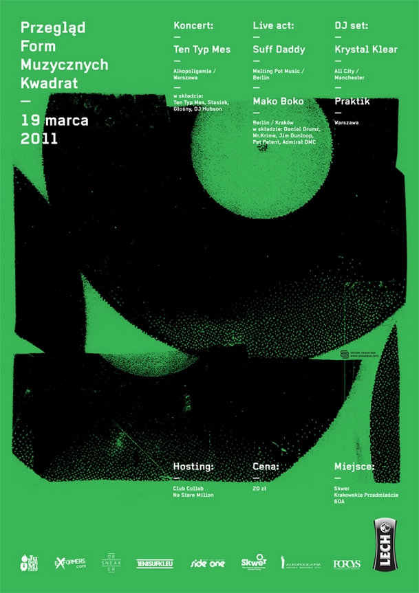 19 marca 2011 - SKWER, Krakowskie Przedmieście 60A, obok pomnika A.Mickiewicza - Warszawa Na Kwadracie wystąpią Krystal Klear, Suff Daddy, Mako Boko, Ten Typ Mes i Praktik. Zapraszamy!Materiały organizatora: