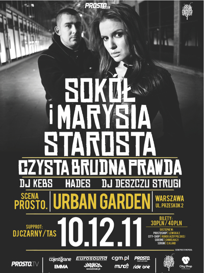Sokół i Marysia wspierani na scenie przez DJ Deszczu Strugi, DJ Kebsa (HIFI Banda) oraz Hadesa (HIFI Banda) 10 grudnia pokażą warszawskiej publiczności jak robi się dojrzały hip-hop.