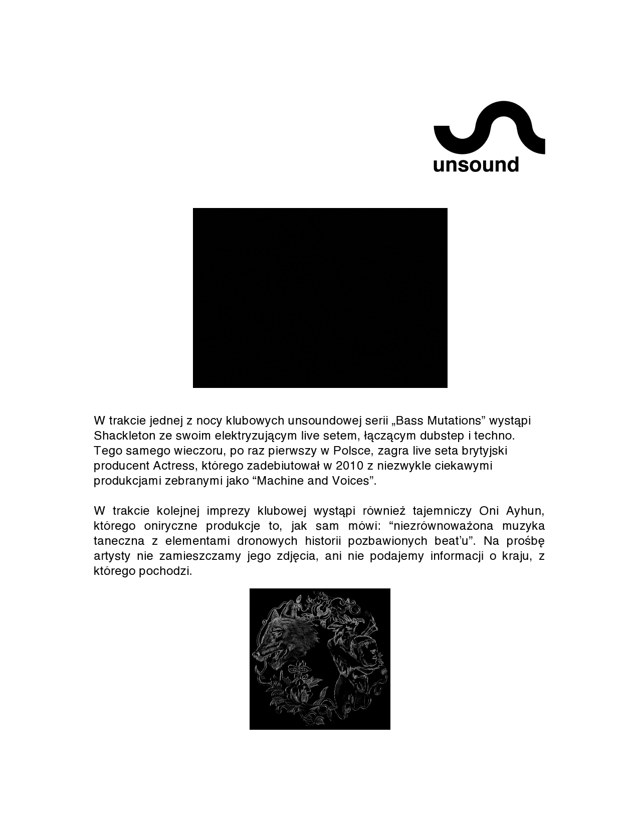 IMPREZY Unsound Festival 17 października 2010 - Kraków - Kraków 24 października 2010 - Kraków - Kraków Tweet Materiały Organizatora: