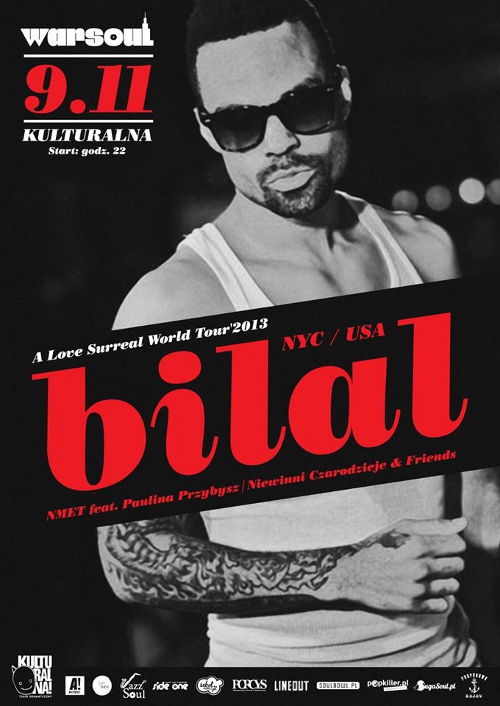 W Warszawie Bilal wystąpi w sześcioosobowym składzie w ramach europejskiej trasy promującej album A Love Surreal: Obok wokalisty na scenie pojawią się: Conley Whitfield Jr. - Bass, Steve Mckie - Drums, Corey Bernhard - Keys, Ed Riches - Guitar i Micah Robinson - background vocals.
