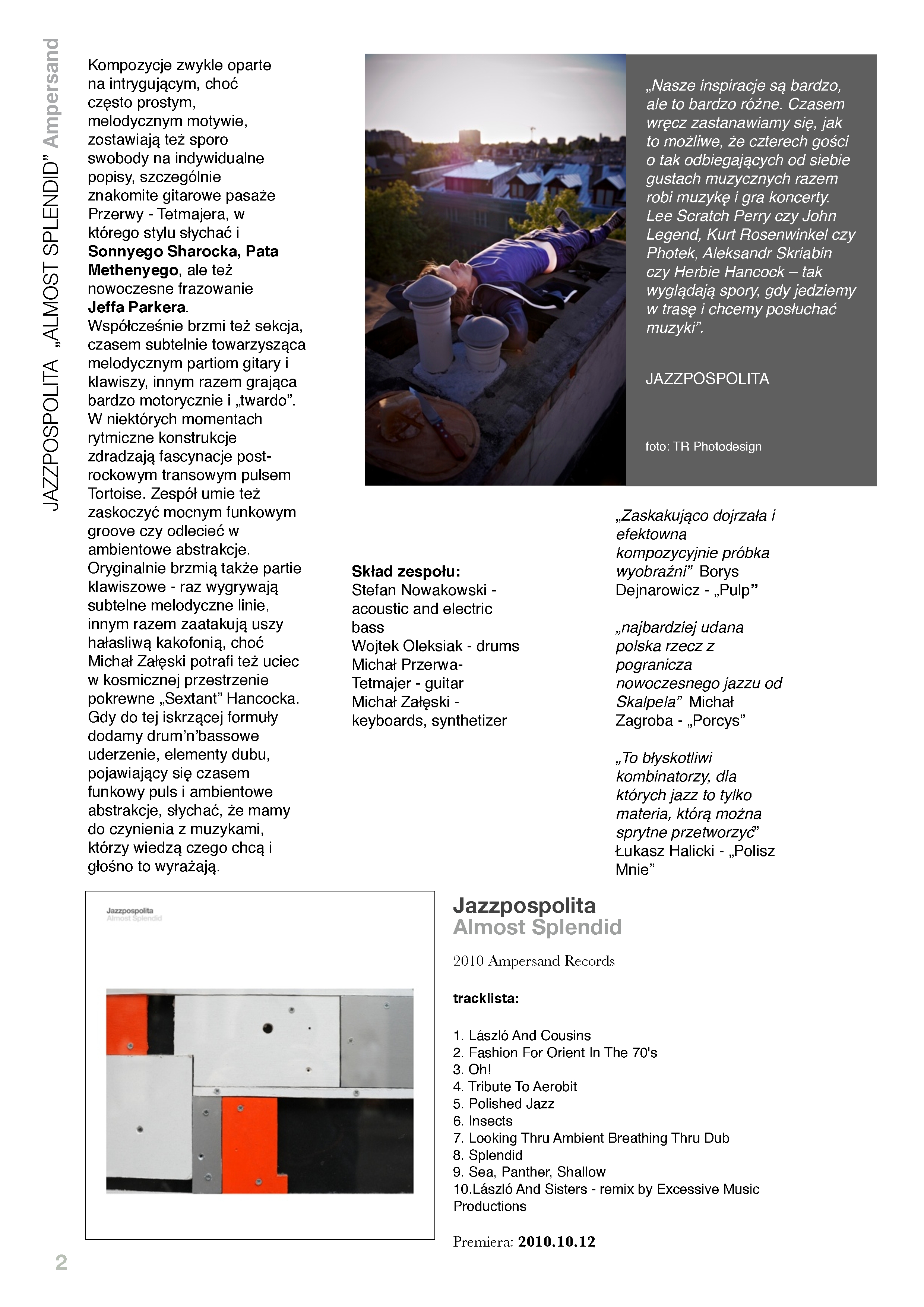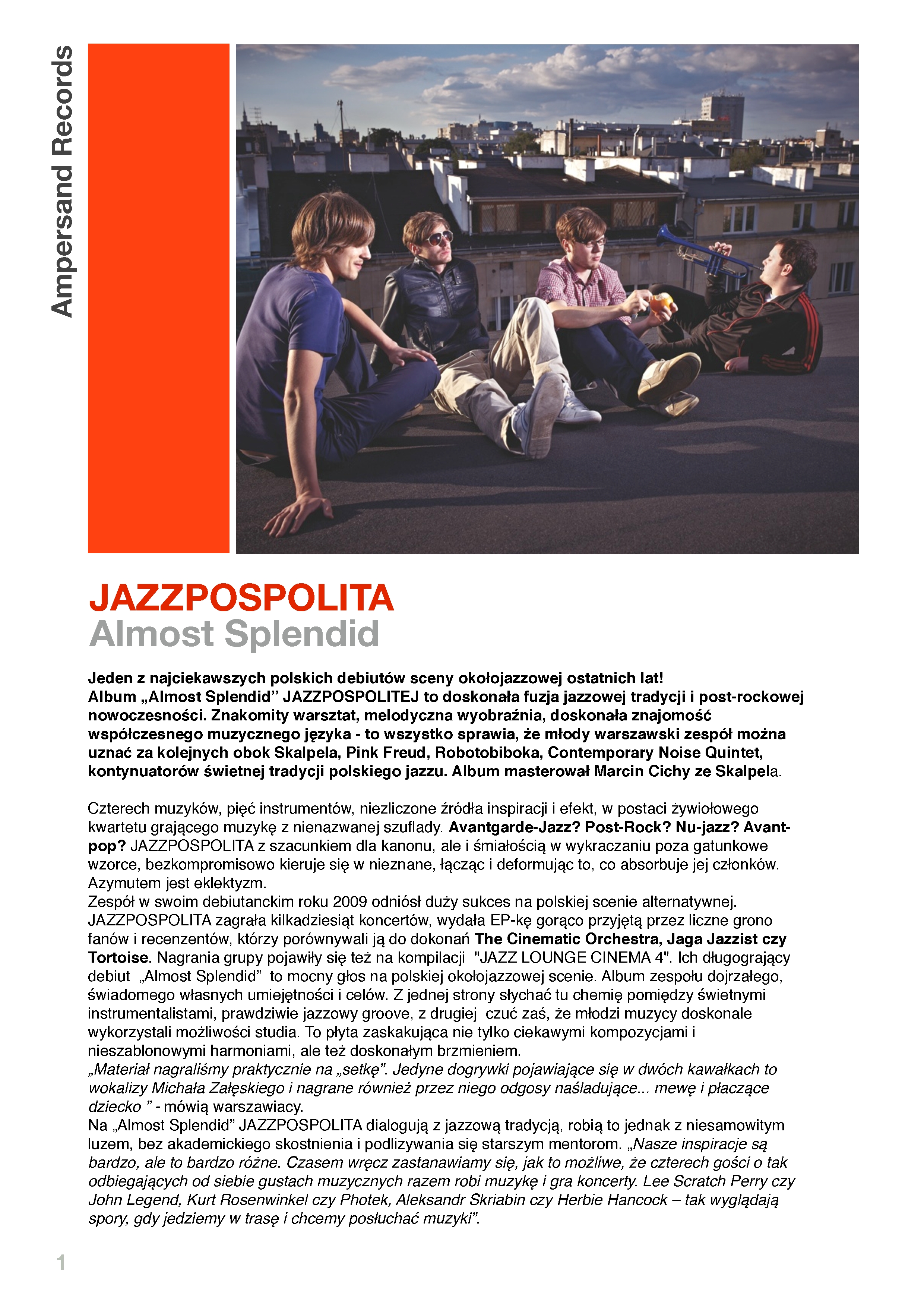 Lada chwila ukaże się debiutancka płyta Jazzpospolitej - zespołu, który, nie bacząc na fakt, że stylistycznie to raczej półka naszych ojców, zdołał skraść redakcyjne serca porywającą EPką. Więcej detali poniżej,tam też zdjęcia, tracklista, recenzje - "istny jarmark cudów!".