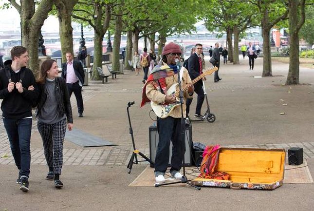 22 czerwca 2015Nile Rodgers może dorzucić kolejny mocny punkt do swojego bogatego CV. Dzisiejszego ranka paparazzi dostrzegli jak muzykował incognito przy londyńskim South Banku, ale bez obaw, w żadnym wypadku nie chodzi tu o symptomy skrajnego bankructwa. Okazało się bowiem, że cała inicjatywa związana była z akcją Sky Arts, dzięki czemu wielu niczego nie podejrzewających przechodniów mogło podziwiać na żywo jak legendarny muzyk, odziany w kraciasty szalik, prezentował m.in "Le Freak" czy "Good Times". Punktem kulminacyjnym zdarzenia była jednak rozmowa już po ulicznym występie, w której artysta opowiedział o swojej aktualnej walce z nowotworem.