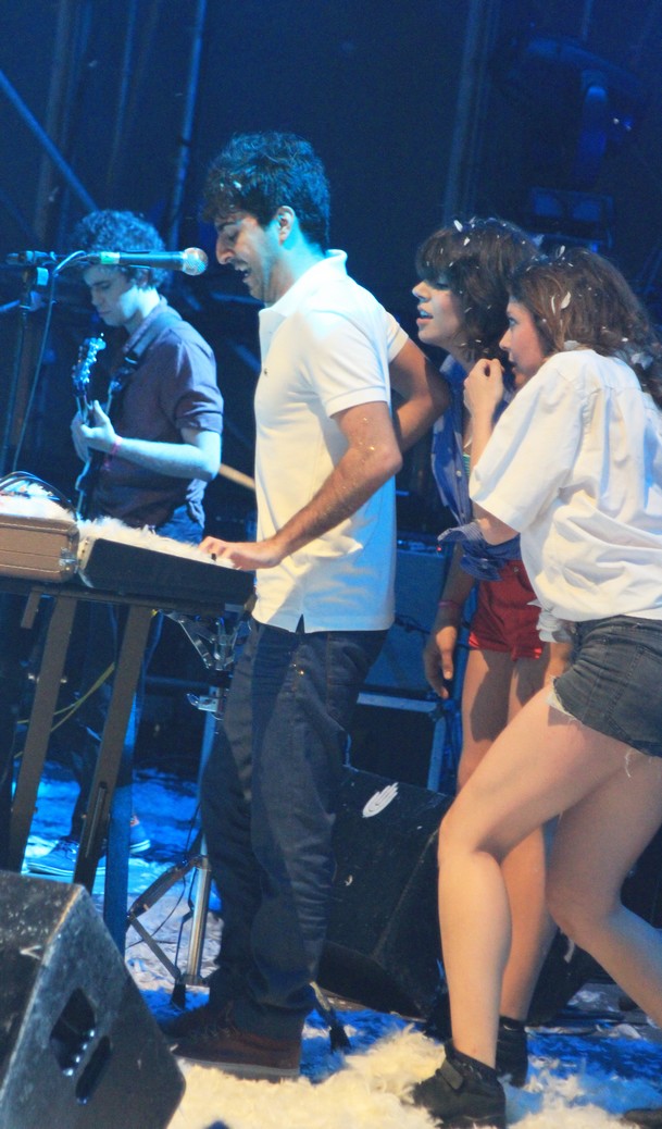 AG: A dlatego, że doszło do bliżej niewyjaśnionego zawirowania w rozkładzie koncertów. Ja dotarłam dopiero na drugą połowę El Guincho, trafiając w sam raz na moment, kiedy tancerki w krótkich szortach, majtkach zabiodrówkach i całej reszcie dziwnych garmentów z American Apparell zaczęły się okładać poduszkami, (kolejna odsłona duper na scenie) rozbryzgując pierze po całej dzielnicy. Mój kompan, którego poinformowałam przed koncertem, że El Guincho to taki "śródziemnomorski Panda", posługując sie znaną metaforą HRO, spoglądał w stronę sceny wyczekująco i w moją stronę drwiąco, a ja czułam jak minuta po minucie moja wiarygodność spada coraz niżej, w nieznane wcześniej otchłanie, bo to co odbywało się na naszych oczach było karnawałem w Rio bardziej niż sam karnawał w Rio, a Panda to przecież smuty.