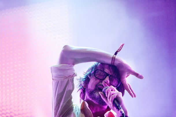 MH: Nawet gdybym bardzo chciał, nie wydostałbym się przedwcześnie z pułapki pierwszych rzędów na Shellacu. Spóźniłem się na Pulp, skutkiem czego zająłem miejsce ok. 8 km od sceny głównej. Trochę jakbym oglądał koncert na dvd. W tłumie czternastu milionów ludzi dominował język angielski. Ja nie powiem, że jestem fanem Pulp, ale z pewnością jestem sympatykiem albumu This Is Hardcore. Grupa Jarvisa Cockera zagrała z niego tylko jeden numer, ten tytułowy. Zdecydowanie dominowały hity z Different Class i odnotowałem nostalgiczne rozanielenie na twarzach par po trzydziestce, które zapewne zakochiwały się w sobie, gdy w kącie pokoju Cocker śpiewał sobie spod igły gramofonu. Z trudem, bo stałem daleeeeeeko, dostrzegłem, że na scenie i pod nią działo się sporo. Był imponujący duży ekran, z kolorowymi wizualkami i logotypem PULP, były moderowane przez Cockera zaręczyny jakichś szczęśliwców, był powiewający nad ludźmi transparent z hasłem "Spanish Revolution" i odzew zespołu w imię zaangażowania w sprawy społeczne, tj. specjalnie dla pogrążonej w protestach Hiszpanii wykonane "Common People". Jestem pewien, że wybierający się na polski koncert Pulp będą usytasy.
